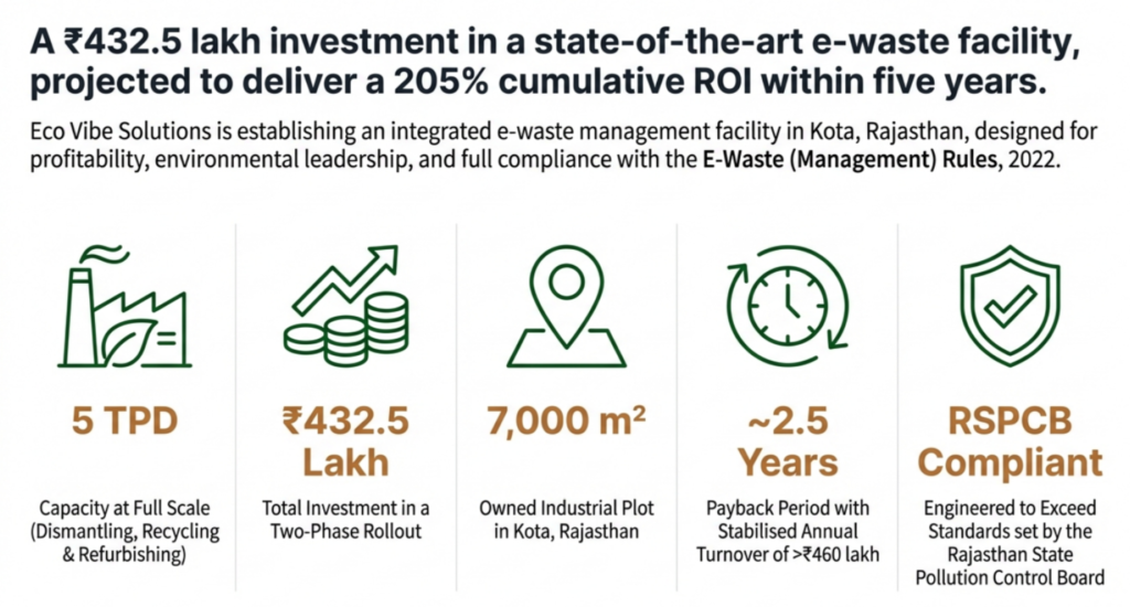 Eco Vibe Solutions Private Limited is an emerging green enterprise focused on delivering scientific, compliant, and sustainable environmental solutions. Headquartered in Rajasthan, the company aligns with national priorities such as Digital India, Swachh Bharat Abhiyan, and E-Waste Rules 2022.